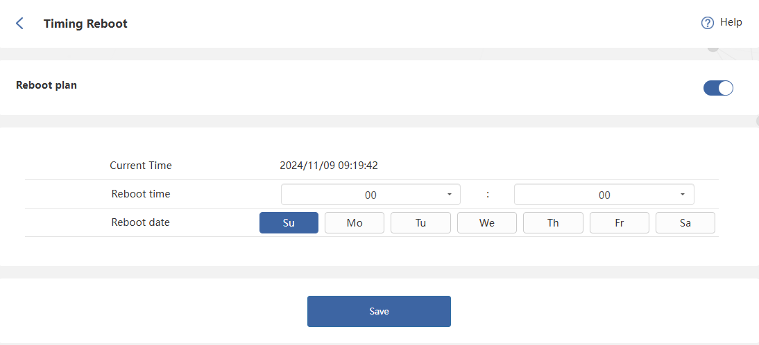 Automatic reboots can help clear unnecessary data from your router and automatically select optimal wireless channels. Before enabling Reboot plan, ensure the system time is accurate. When router uptime is less than 60 minutes, the device will skip non-essential reboots after reaching the scheduled reboot time.