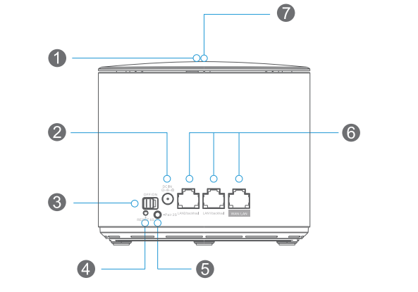 2 . Reset Button: Press and hold for 6 seconds to reset the mesh device.