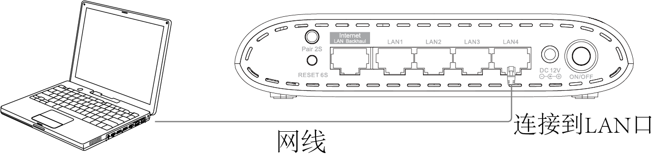 - 有线: 使用另外一根网线,将其一端插入电脑网络连接口,另一端插入路由器背面LAN口。