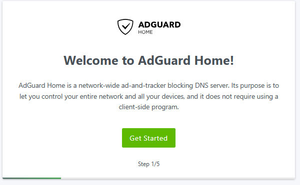 1) Enter the AdGuard Home manage page, and click Get Started.