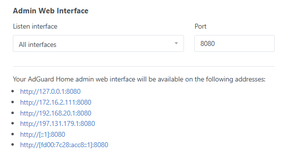 3 . Click the URL behind Manage Page or enter http://192.168.20.1:3000 manually on the browser. Access the AdGuard Home manage page and enter the installation guard page.