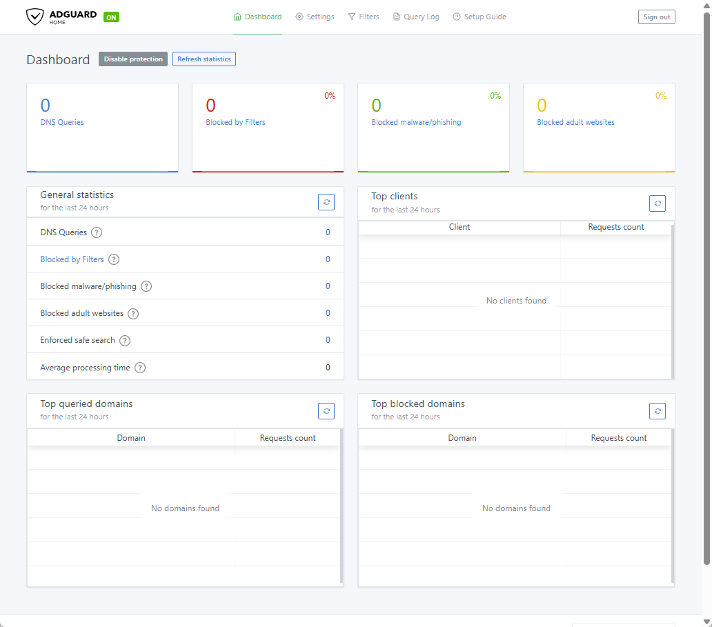 7) In the dashboard, you can monitor the number of DNS blocks and some lists in real time.