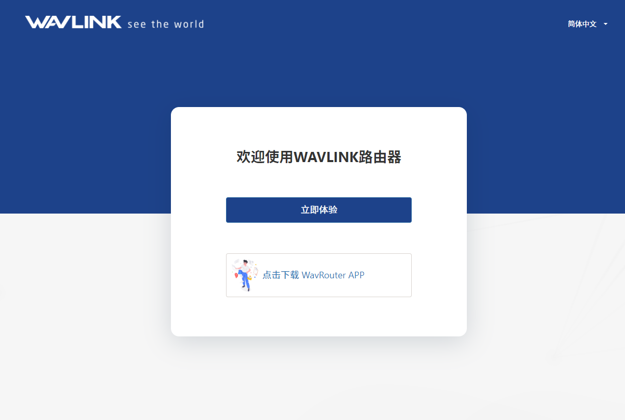 3)有线/无线连接设备后,请开启网页浏览器,输入网址wavlogin.link,您将会进入Wavlink路由器设置页面。若未出现此页面,请手动输入192.168.20.1进入配置页面,按照提示进行配置。