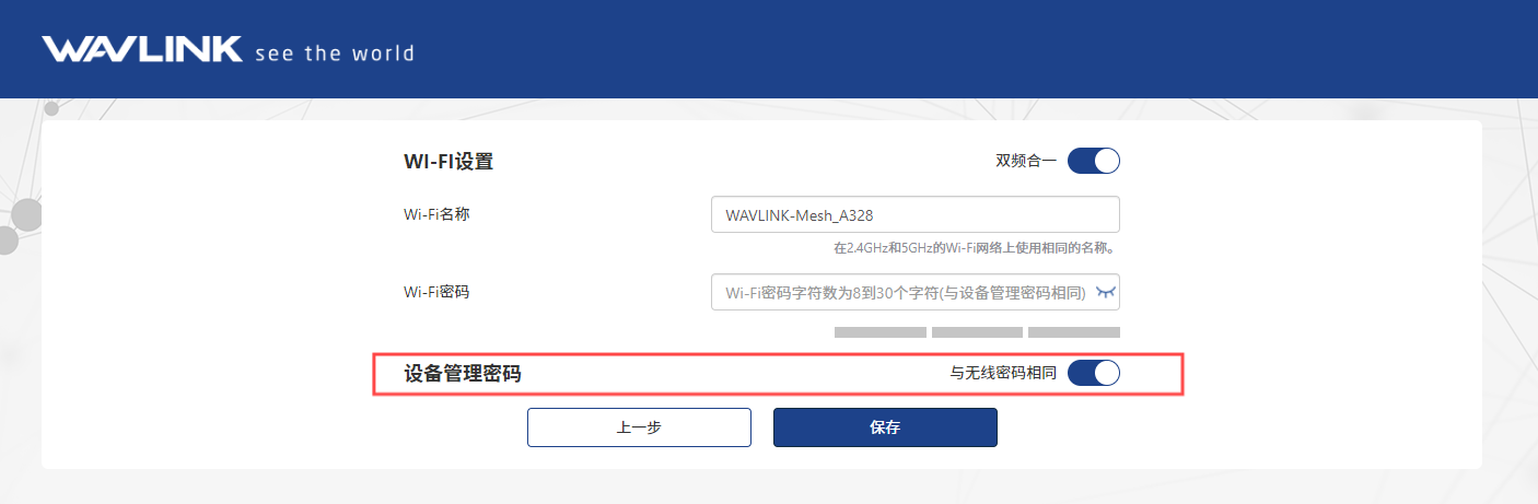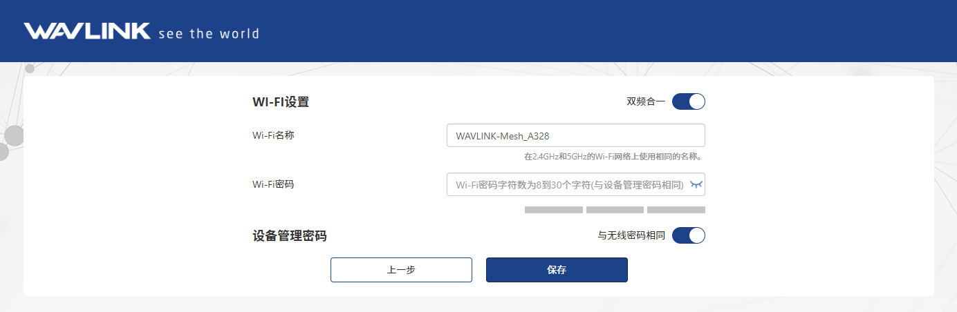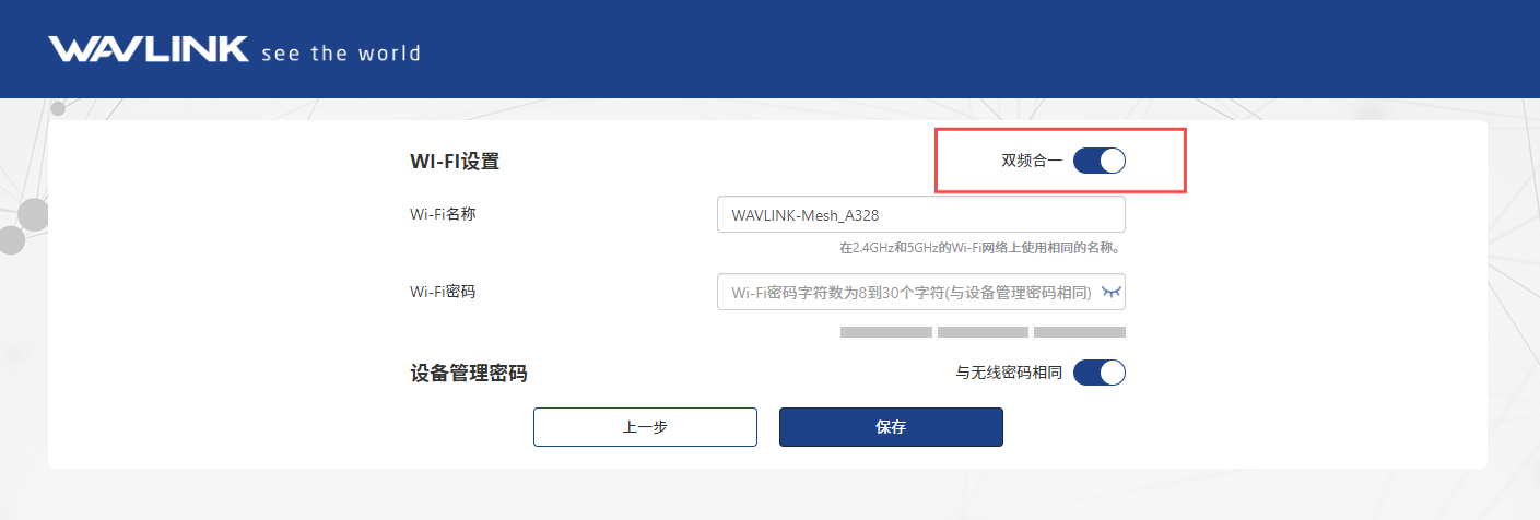 1)若需将2.4G和5G设置为相同的Wi-Fi名称和密码,打开双频合一即可.