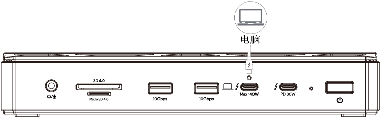 按压电源开关开启或关闭扩展坞,首次使用未连接电脑时电源灯为红色。