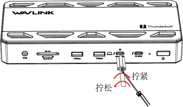 - 顺着箭头方向将连接扩展坞那端穿过锁线壳。