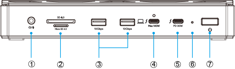 ⑤ TBT5下行口(80Gbps, 视频传输, 30W下行充电)