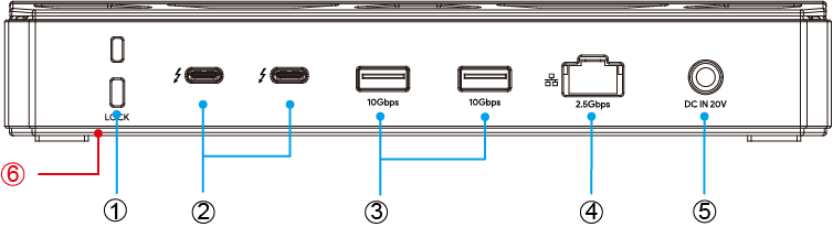 ⑤ TBT5下行口(80Gbps, 视频传输, 30W下行充电)