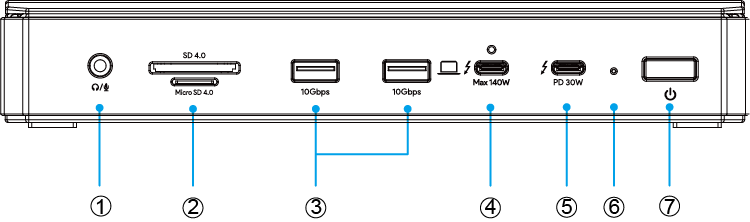 ④ 雷电5上行口(主机, 140W上行充电, 视频传输)