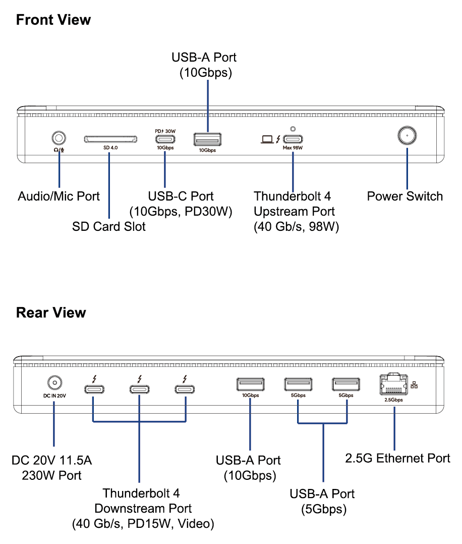 - 1×Thunderbolt™ 4 Dual Display Docking Station