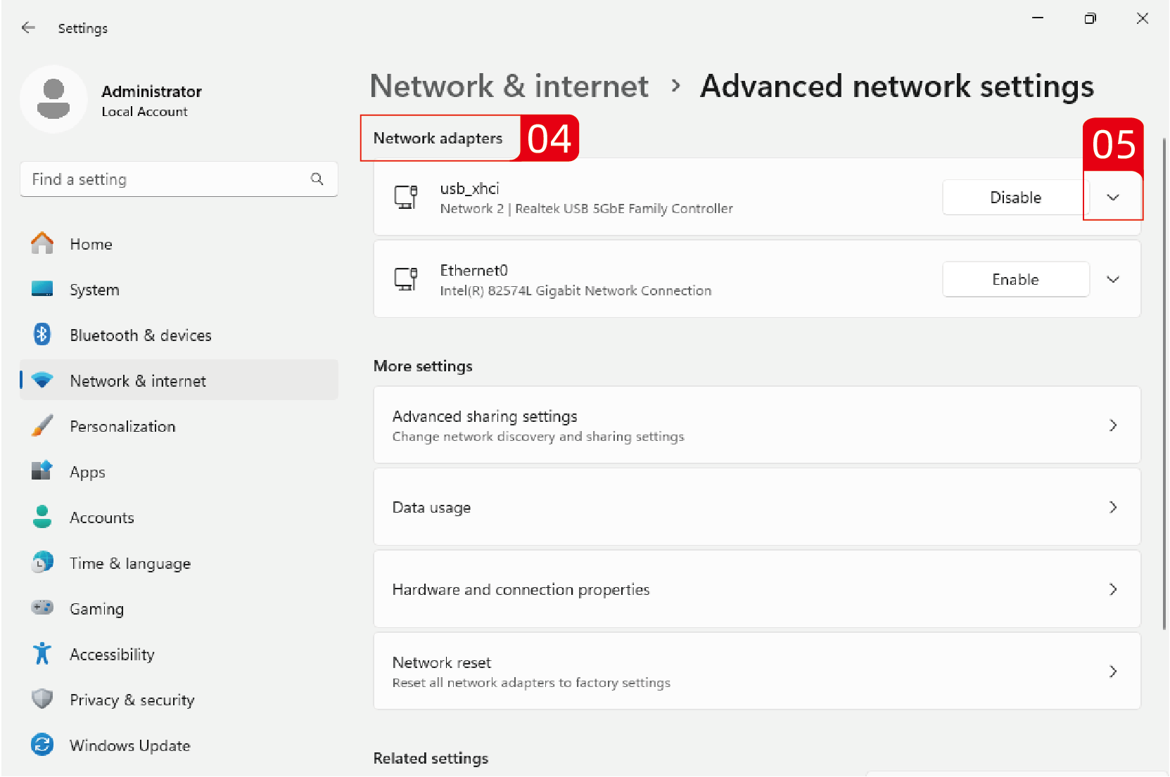 - Locate the Network adapters and find the 10G network card, then click the drop-down arrow icon on the right.