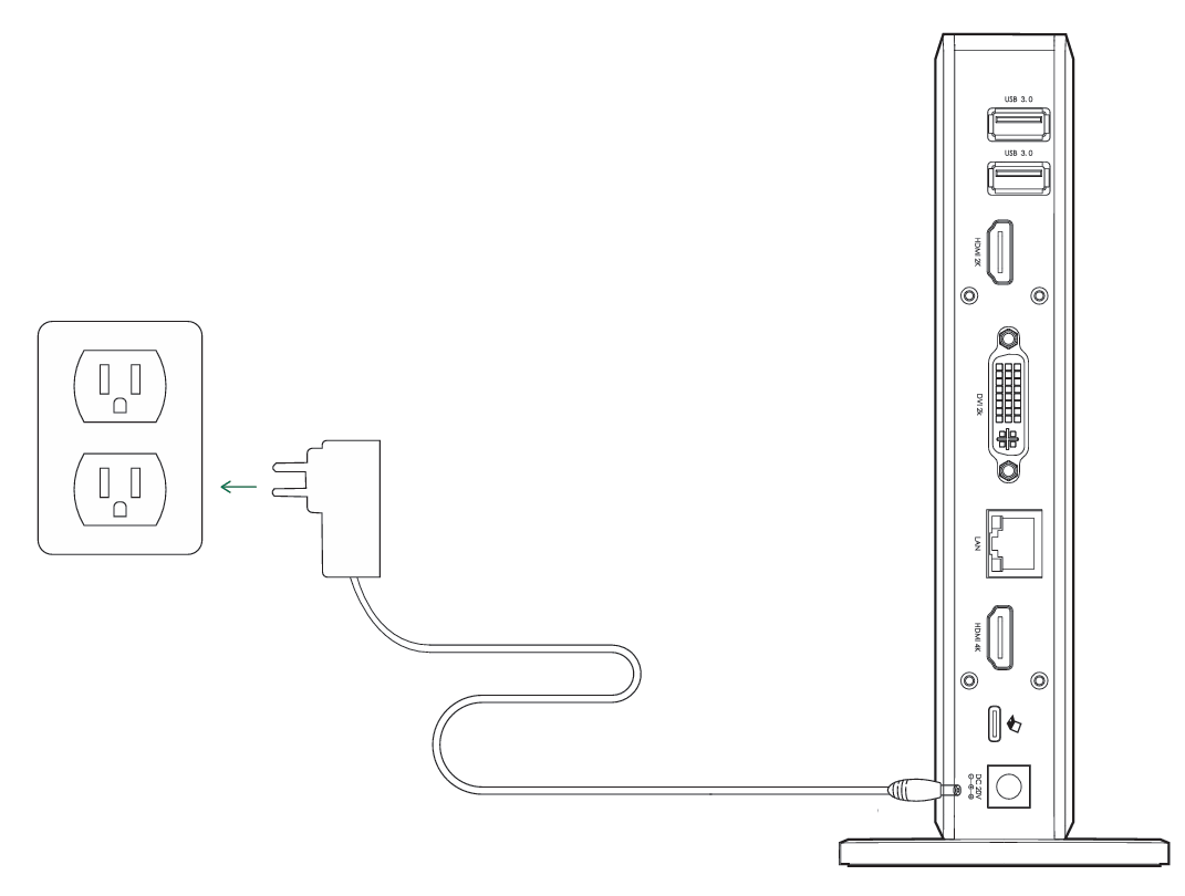1.1 Plug one end of the equipped Power Adapter into the Power Jack port (DC IN 20V) on the Docking Station.