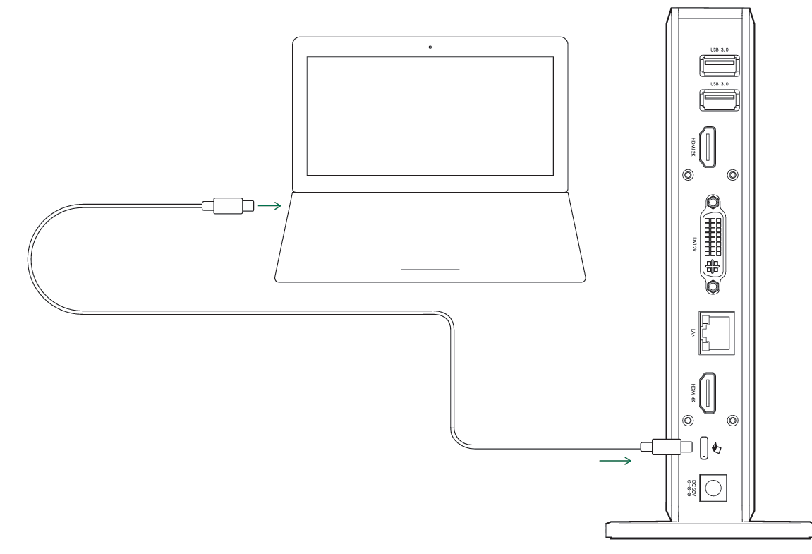 2.1 Use the provided USB-C to C Cable or USB-A to C Cable to connect the USB-C Upstream port on the Docking Station to your laptop.