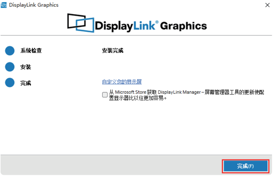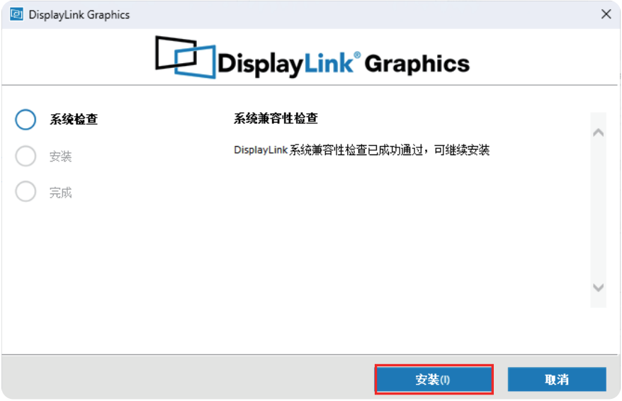 若Windows电脑未安装过DisplayLink驱动,点击“安装”并跟随向导安装驱动;若您的Windows电脑安装过该驱动则点击“升级”即可。