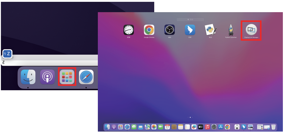 - 点击程序坞中的启动台,再点按DisplayLink Manager图标。
