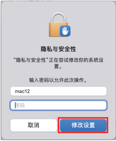 - 若出现以下弹窗,请手动输入密码或指纹解锁以允许更改操作。