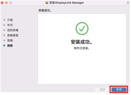 - 安装完成后点击“关闭”。