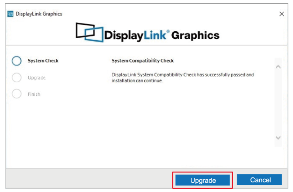 If there is no DisplayLink Driver in your Windows computer, open the file and then follow guide to install the Driver; If your Windows host has ever installed the Driver, open the file and the click Upgrade.