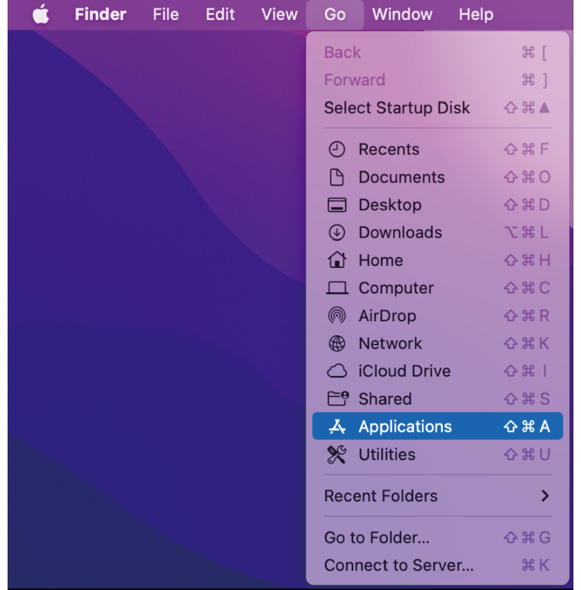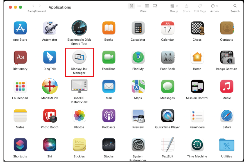 - If you didn't get the notification from DisplayLink Manager, please click Go in the function bar at the top left of screen, then select Applications and click DisplayLink Manager.
