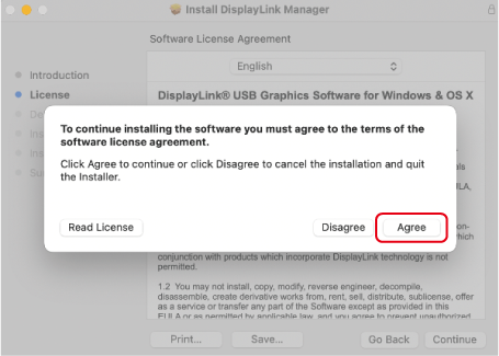 - Double-click the driver file you just downloaded, navigate to the Install DisplayLink Manager window, click Continue.