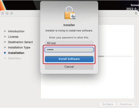 - Click Install and choose Use Password.., then enter the screen password and click Install Software.