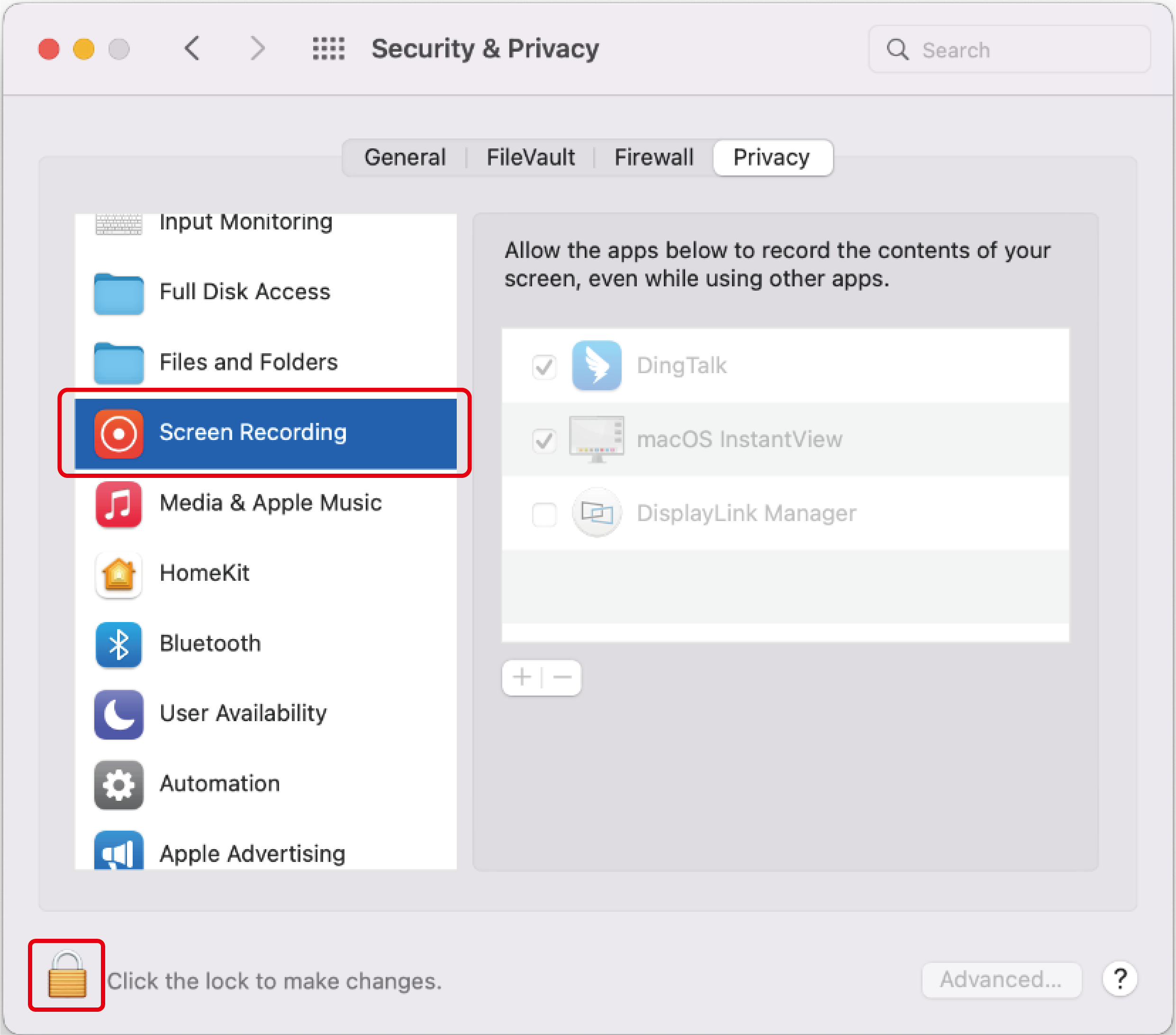 - Enable Screen Recording to allow the DisplayLink Manager application to capture pixels and send them to your USB peripheral: