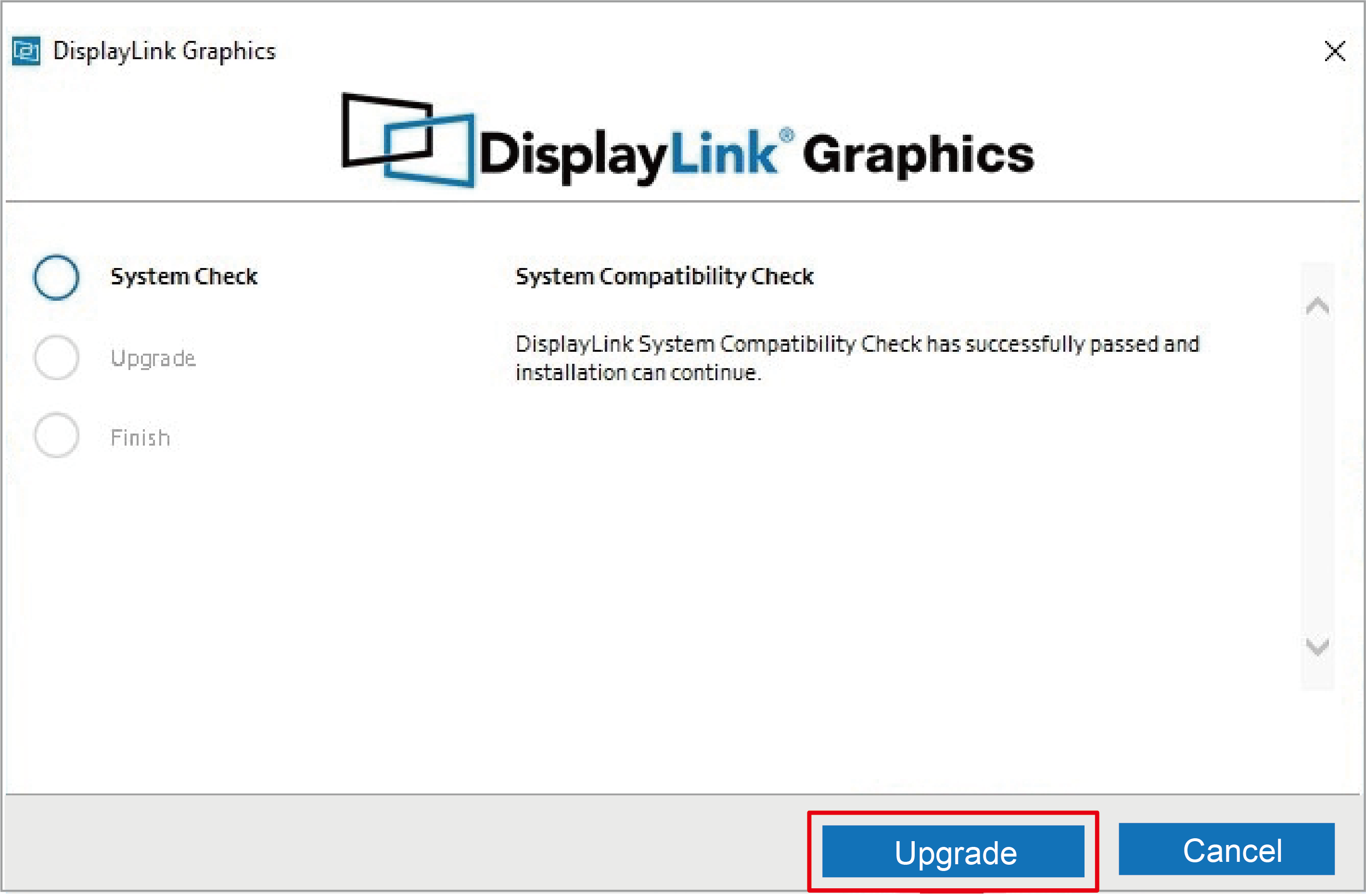 - If there is no DisplayLink Driver in your Windows computer, open the file and then follow guide to install the Driver; If your Windows host has ever installed the Driver, open the file and the click Upgrade.
