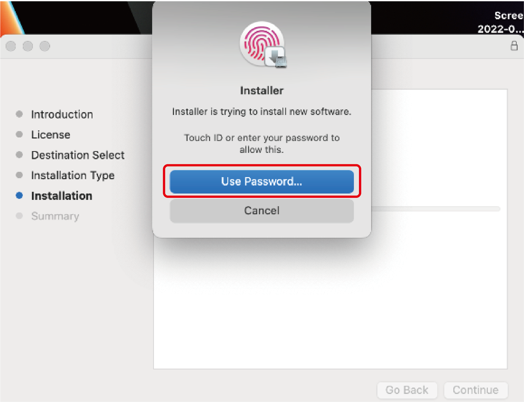 - Click Install and choose Use Password..., then enter the screen password and click Install Software.