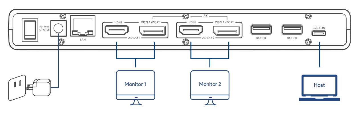 - Step 1. Connect the host laptop to USB-C Upstream port.