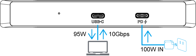 Connect to the Host, plug one end of the USB-C cable to the Upstream USB-C of Adapter, then plug another end to the USB-C on the computer(if it is USB-A, use the USB-C to USB-A Adapter to connect).
