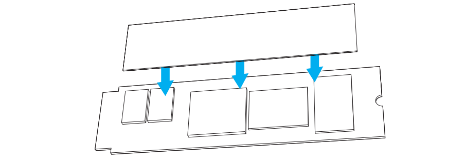 - Tear off the protective films on both sides of the thermal silicone pad, and stick it on the SSD.
