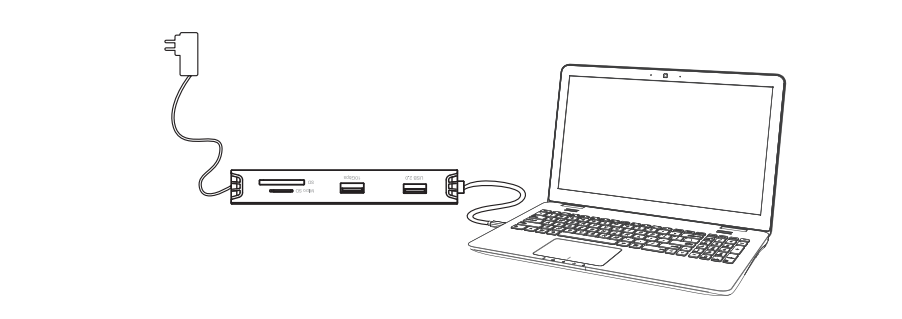 - Connect an external Power Adapter(100W) to the USB-C PD IN port, and plug the Power Adapter into the Power Outlet.
