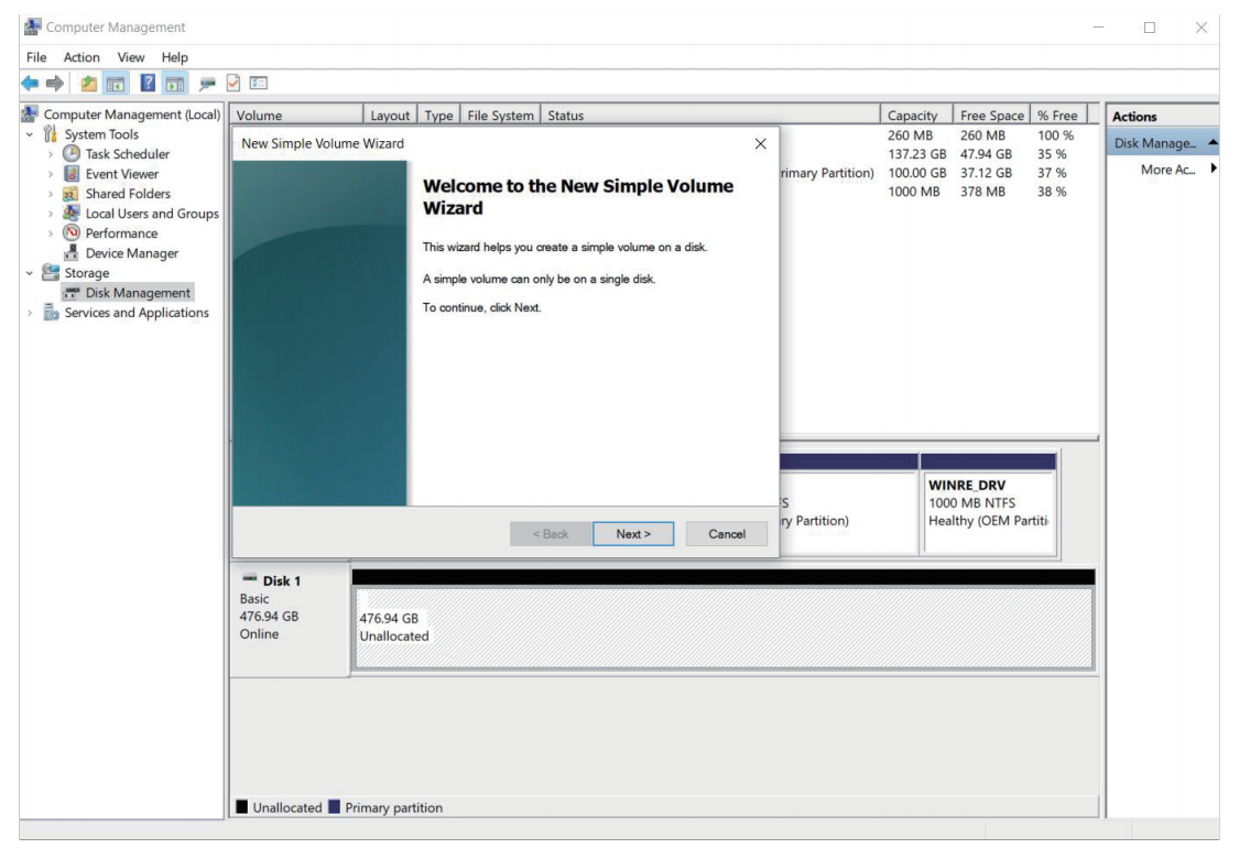 (2) Right click your disk, choose “New Simple Volume” and select “Next” to proceed.