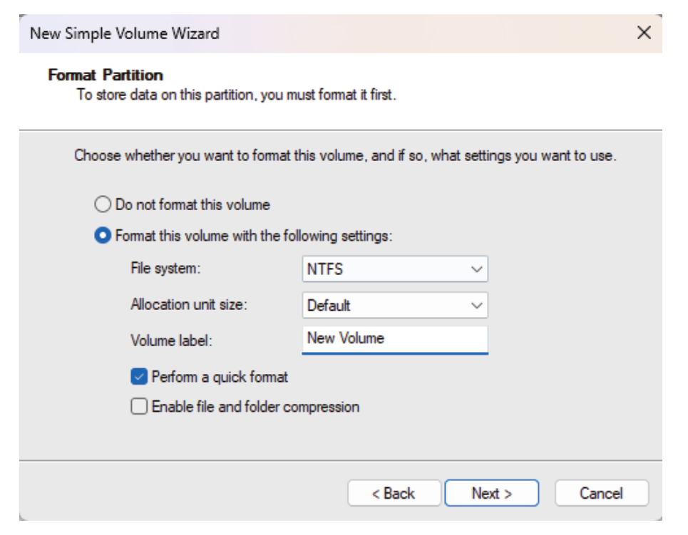 Partition and Format Installation