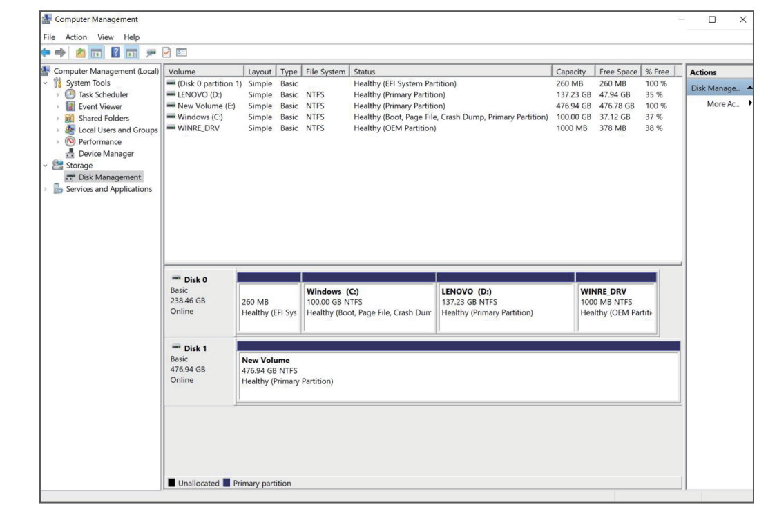 (1) Right click This PC icon and select “Manage”, choose “Storage” then go to “Disk Management”, select “MBR(Master Boot Record)” or “GPT(GUlD Partition Table)”, click “OK”.