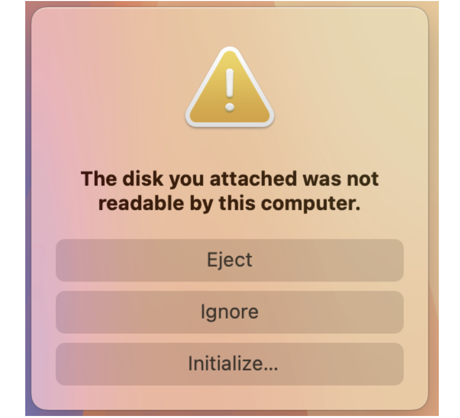 (1) After connecting to the product, there is a prompt window “The disk you attached was not readable by this computer” popping up.