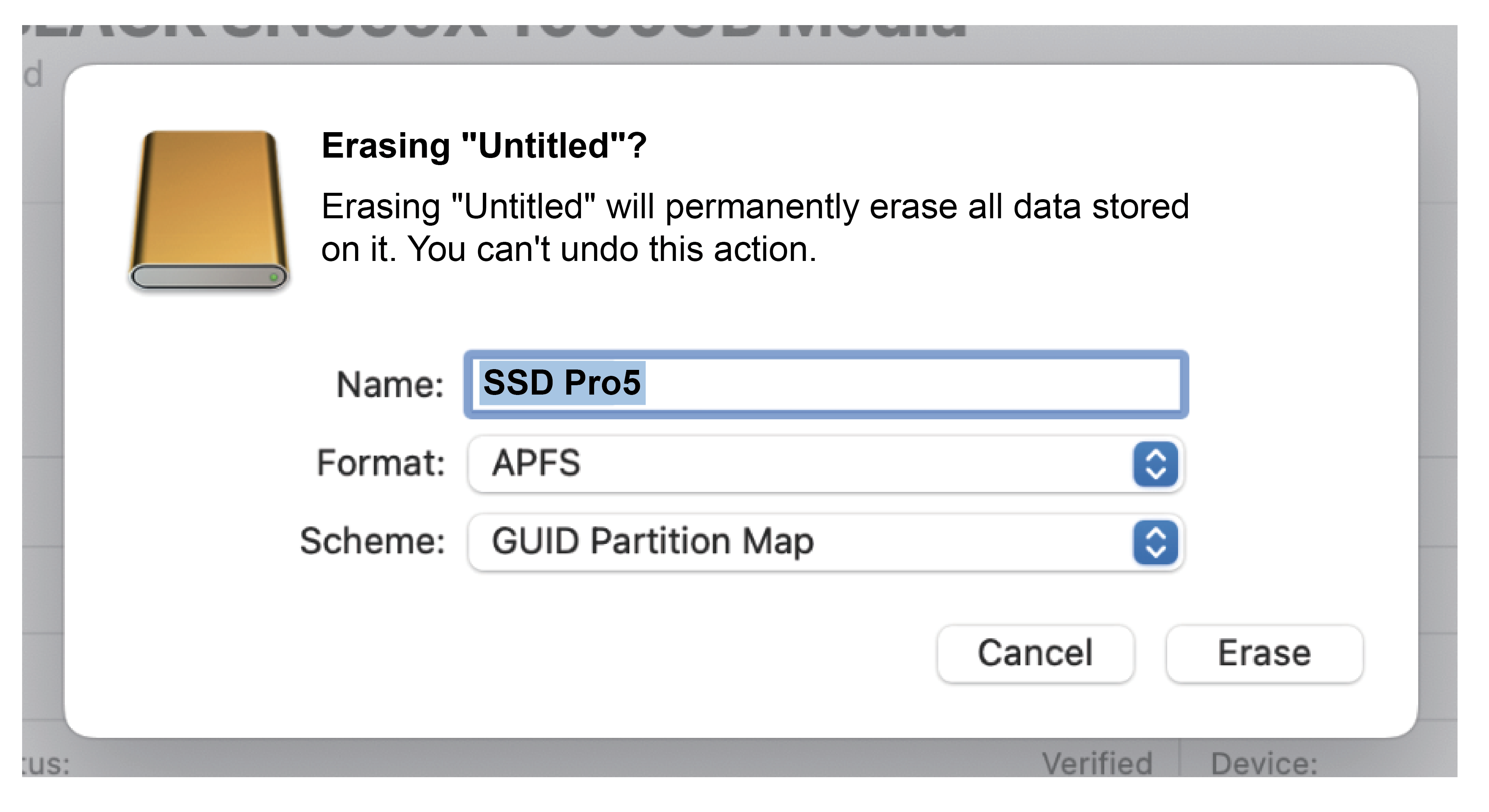 (4) Select the “Name”, “Format" and “Scheme” from the Erase or use the default one.