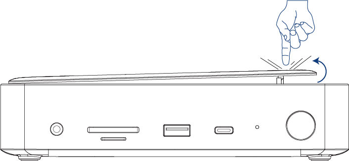 At a 45-degree angle, slide in your SSD until it is firmly installed. Insert the silicone retention clip into the mounting socket on the SSD. Align the SSD with the slot’s fixing hole and gently seat it. Rotate the retention clip clockwise until secured.