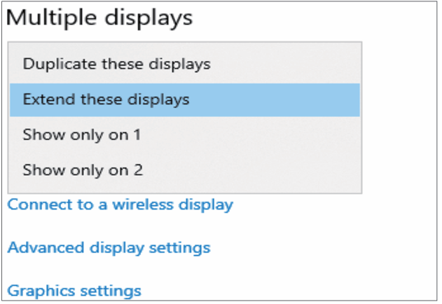 1. Scroll down to the Multiple displays, and select the mode in the drop-down list that fits for your needs.