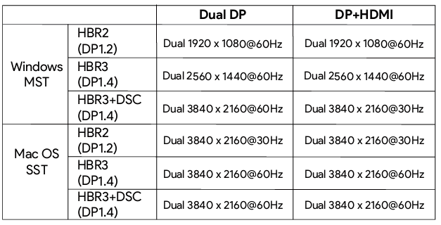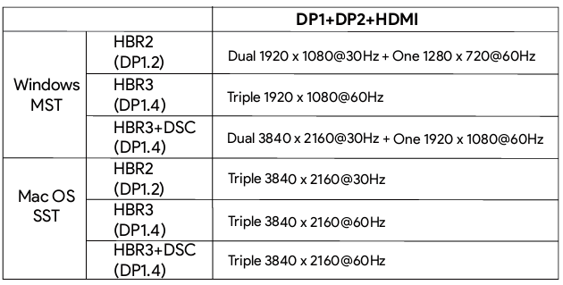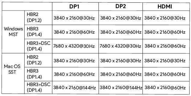 Mac OS is Single-Stream Transport mode, so only one video source can be output such as ABB or ABBB(A is the primary display).