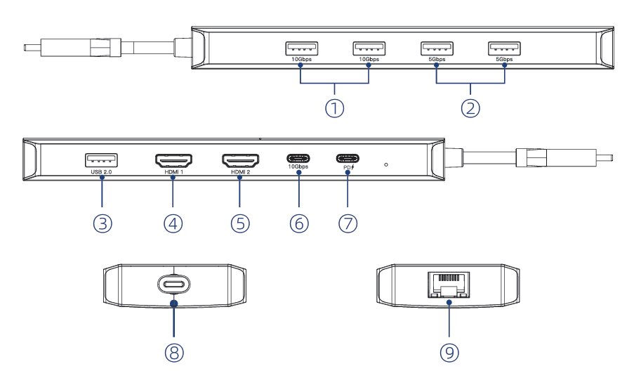 - 1 × USB-C 10G Dual 4K 10-in-1 Hub