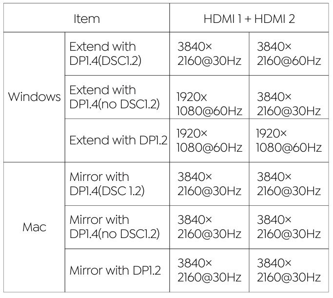 Mac OS is Single-Stream Transport mode, so only one video source can be output such as ABB(A is the primary display).