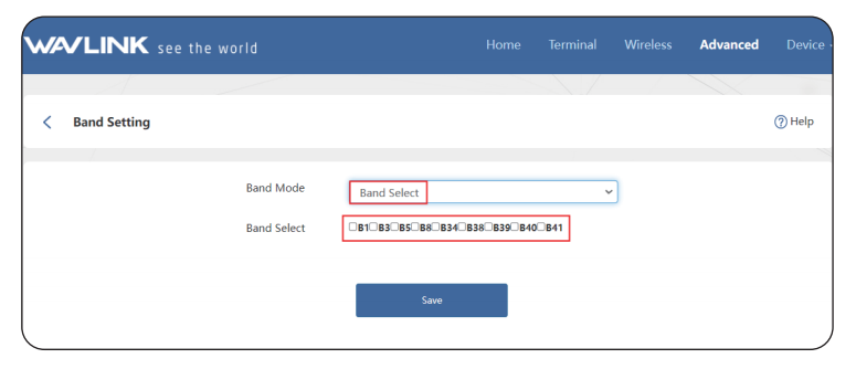 - Note: If you know the band your SIM card supports, go to the WAVLINK device's management page and select the corresponding band to optimize connection performance.