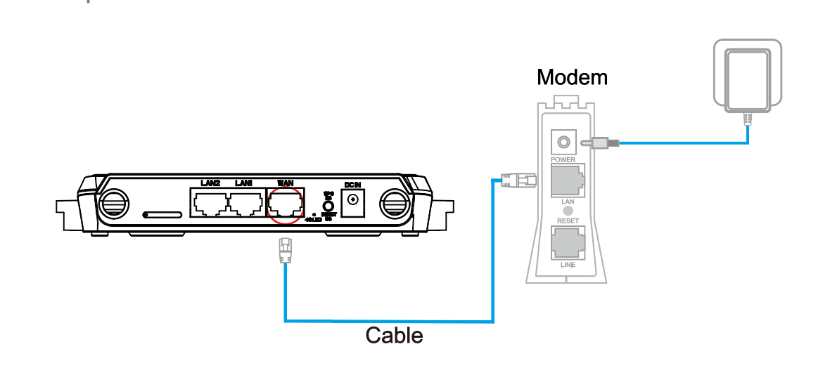 1.2 Use the provided Ethernet cable to connect the modem to the WAN port of the router.